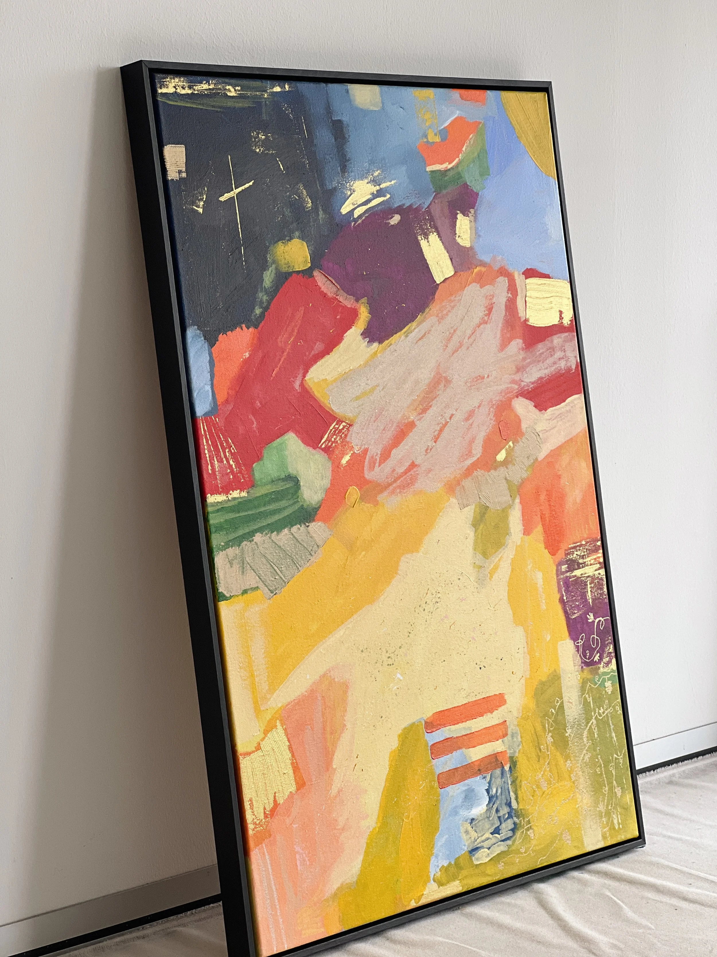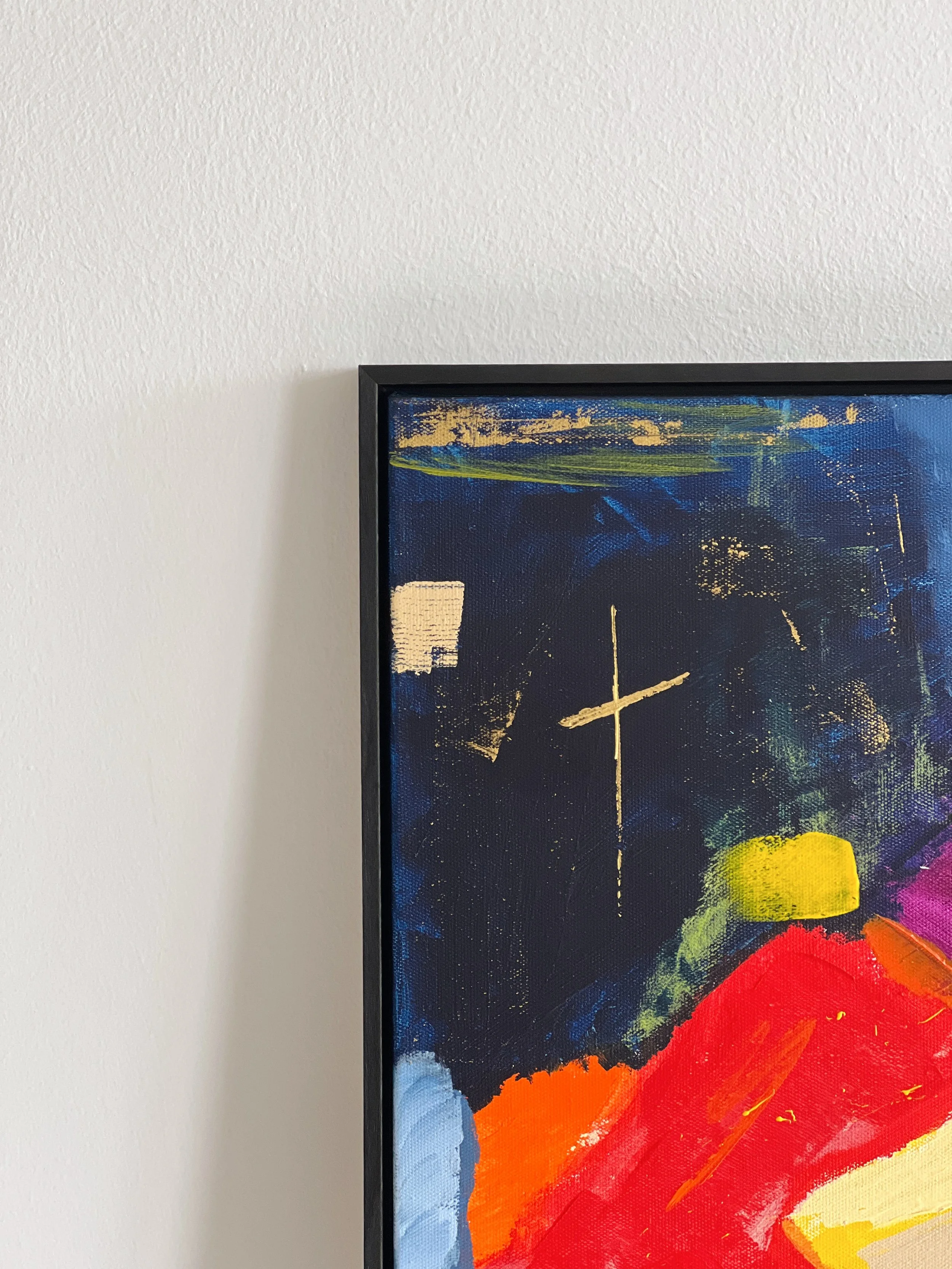 Each color in this painting holds meaning, representing the different seasons of life, and the gold across the canvas symbolizes God’s everlasting presence in every moment.