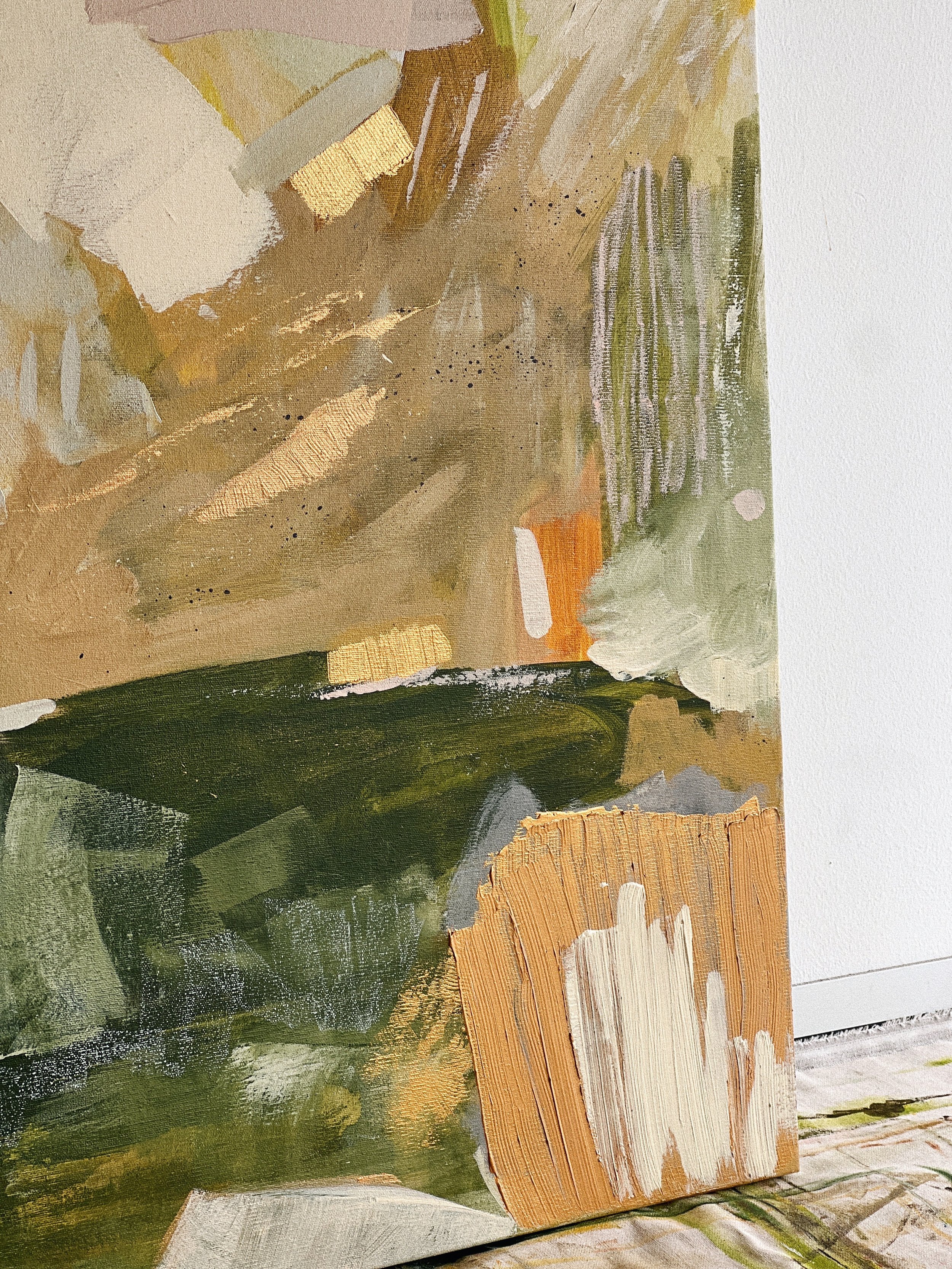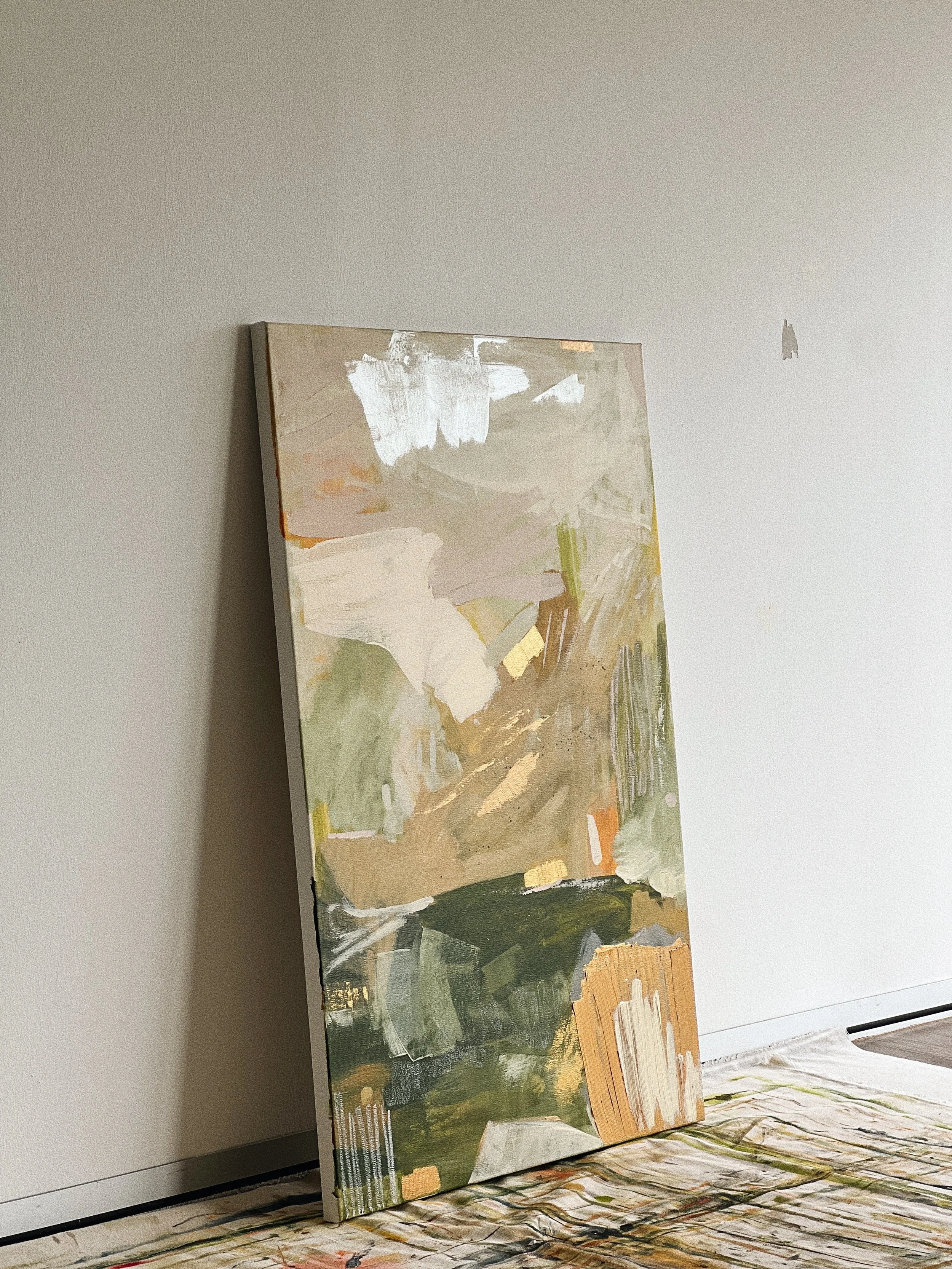 Created with countless layers and spontaneous marks, “Wild Haven” reminds us that rest can always be found, even as life moves and changes around us. It invites viewers to slow down and notice the details, with each area revealing new marks, scribbles, and splashes of color waiting to be discovered.